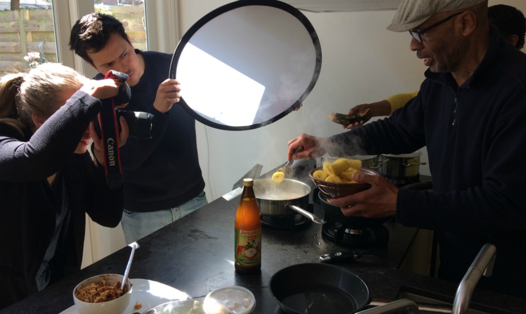 Dit was de laatste dag van de productie van het kookboek. De meeste mensen uit ons team waren thuis aan de slag gegaan. De twee chefs (mijn vader en Monique) hebben met elkaar op locatie, bij Monique thuis, doorgepakt waar de sfeer ontspannen was. We hebben vooral met veel plezier nagepraat, genoten van de heerlijke ‘left overs’ en het zonnige weer. Wat is het fijn om buiten te kunnen werken met zulke inspirerende mensen aan zo’n bijzonder en mooi project.